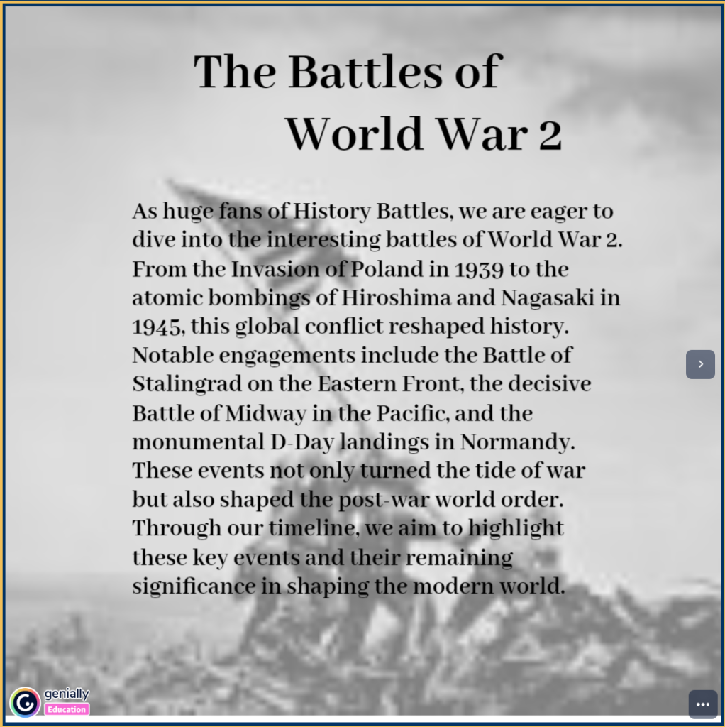I loved this timeline on events that occurred during World War 2. You both explained in great detail what each battle entailed in a simple manner.