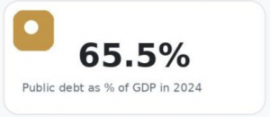 World Bank data put public debt at 65.5% of GDP in 2024.