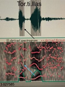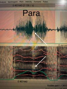 Después de que mi participante leyó el párrafo, la grabacion se analizó por Praat, un programa de computadora diseñado para la investigación fonética (Boersma & Weenink, 2025).