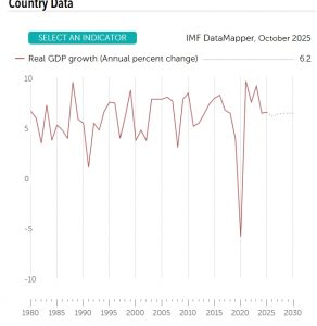 - International Monetary Fund. “IMF Country Data: Real GDP Growth (Annual Percent Change).” Accessed March 6, 2026, https://www.imf.org/en/search#q=India%20GDP%20growth. ↵