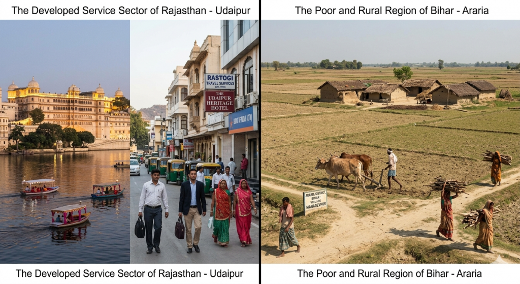 When arriving in Udaipur in Rajasthan state, you find beautiful lakes, where palaces and temples with historic significance attract large number of tourists. Let’s follow a father working as tourism guide in Udaipur. Udaipur historically been abundant in tourism, giving many opportunities to create income in this area. In addition, tourism incentivizes the government to invest in the infrastructure of this city because growing its infrastructure means welcoming even more tourists. More profits provide the tourism industry the power to pressure the government for further improvements. As a result, the guide and his family live better. The children attend high quality school ensuring higher educational achievement, which in turn lead to much more opportunities and jobs. Udaipur’s historically cultural resources help the city develop efficiently attracting tourists and investing. Consequently, Udaipur, “the city of lakes” has experienced growth and development overtime. Tourism benefits go beyond creating more jobs they further provided the impetus to grow and invest in the service sector. Udaipur promotes public private partnership to capitalize on its resources and its tourism such as Rajasthan Industrial Trade Expo (RITEX), organizers say that the three-day Expo will feature over 200 stalls and is expected to attract more than 30,000 visitors. The Organizers project the Expo will generate direct and indirect business opportunities exceeding Rs 1,000 crore.9 Increasing revenue from tourism enables them to organize and keep improving their infrastructure and it also help many people transform from the agricultural sector into the service sector and get access to education and basic needs or services, as a positive cycle. Udaipur, unlike Araria, capitalizes on its cultural treasures to further improve its economy and develop further possibilities.