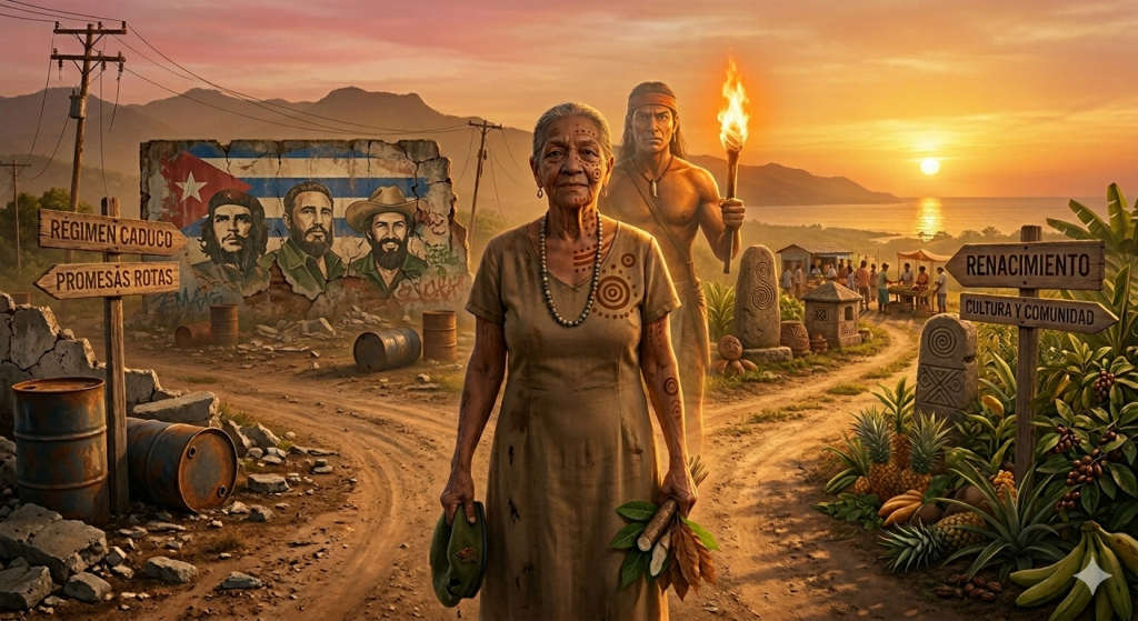 I am Doña Elda, an elder from the sequestered valleys of Baracoa in Oriente, where the untamed land itself mirrors the enduring spirit of my Taino ancestors — a wild and quiet resilience that the state has long tried to extinguish, yet still whispers through the mountains, the rivers, and the maternal line I carry. Mine has been long, this life as with my memories, now in its ninth decade. I know, I remember firsthand the breadth of august vows committed, and those broken — the revolutionary promises I once embraced in my youth, only to watch them erode into the dimming hopes and gross exploitation of today. My time spans the arc of Cuba’s promises and failures, from the fervor of those early years to the weight of what remains, and the grief for what never became. In 2026, as blackouts swallowed entire days while the shelves of our bodegas lay empty. I find myself at the crossroads outside town, only this time in a different spirit, I stand where the dirt paths diverge like the fractured narratives, imperatives of our nation. One path leads back to the crumbling monument of a regime that once ignited hope but now breeds despair; the other hints at uncertain renewal, where echoes of identities long thought lost might offer a quiet solace against despair. Cuba’s decline is not a storm born yesterday, but a slow unraveling transition rooted in centuries of imperial imposition and revolutionary impotence. I recount our story to you as I stand here — not as a lament, but as an empirical chronicle of how a nation’s ideals erode under their own weight. With only the subtle threads of cultural endurance in the legacy of my descent, I will guide you through the history that has brought us to this crossroads.