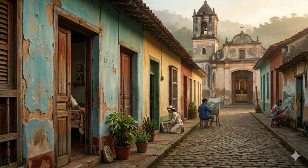 Amid this institutional entropy, however, a subtle shift stirs in the cultural ethos, especially among the young people that would remain. Hidden within the paintings that hang in our small church, on the faded tiles of a few old buildings in town, and in the simple carvings my neighbors now place beside their doors alongside other symbols, the spiral – that ancient Taino motif of energy and continuity – appears again. It is not a loud declaration, but a quiet reminder that something older than the state still lives.14 As state identity politics falter – “Cubanismo” exposed as a hollow construct – people quietly reclaim fragments of erased histories, for self assurance, for recent learning, for survival. Who are we, and what have we to persevere for, if the overarching identity we’ve been led to adopt is predicated on false pretenses? In Oriente, where Taino DNA persists strongest, communities like Caridad de los Indios host modest revivals and gatherings, not as political movements but as functional mechanisms for endurance before jeopardy.15