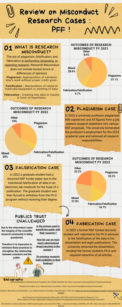 One thing: I am not sure what “NSF” refers to. I tried checking in the infographic if there was a provided definition, but I did not see it. Other than that, it’s weird to hear that these things actually happen. Usually, you get so used to being told NOT to plagiarize or fabricate that it’s a bit of a shock to hear when things like that occur.
