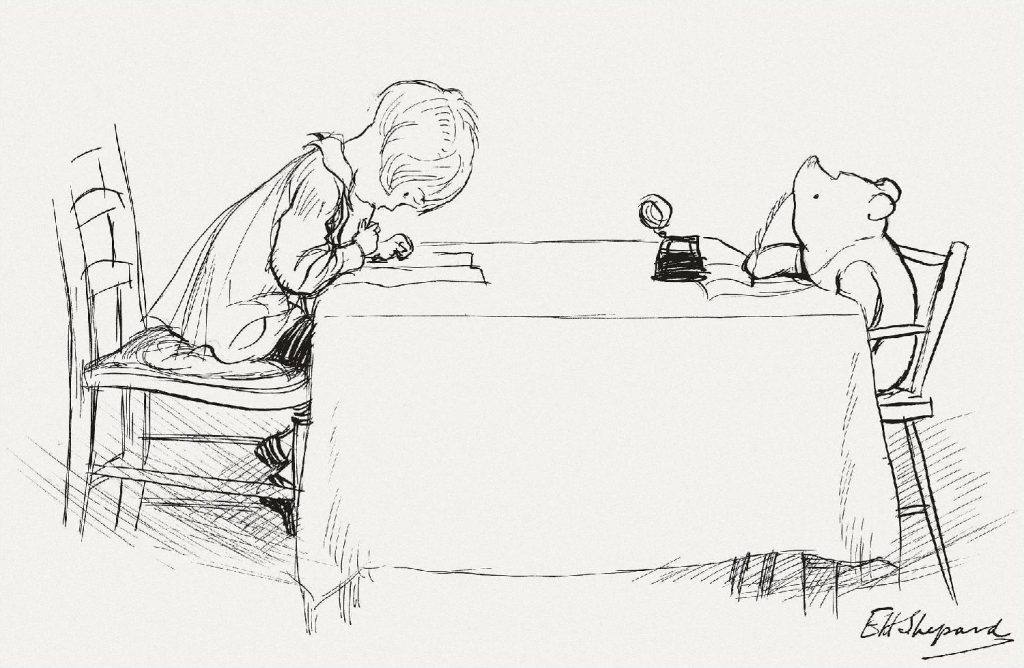 It still wasn’t over yet and Alan Milne had a lot of work to do. He continued writing short verses along with reading them to his son to make sure each chapter and each new adventure lived up to the “real” characters’ approval. And he didn’t stop there, Milne went on to have his perspectives in the writing shift from first person to third person, then lastly to second person.13 He wanted the reader truly to feel a part of their private world. After enough stories had been compiled together for a book, he put them in the order he thought best before meeting with Ernest H. Shepard, who would eventually come to illustrate all three books that Milne would publish based on his son. What made Shepard’s work so memorable is that even though he drew them as toys, he made them feel real as he kept the character Christopher Robin looking like Milne’s only son.14 Even when Disney bought Winnie-The-Pooh and created their own version of the characters, Shepard’s work is still symbolizing the realness of childhood.