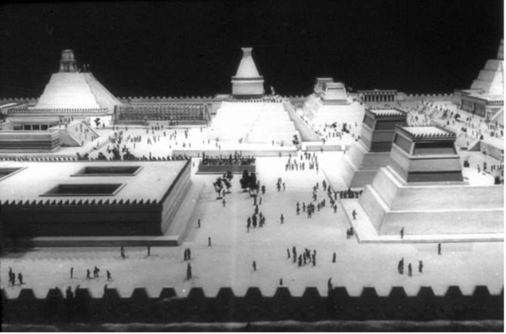 After setting the example, they were able to continue their journey to the promised land. Tired yet eager to please their god, the Mexicas finally received a sign from Huitzilopochtli that they were at their new home. It is said that Tenoch and his tribe spotted a mighty eagle on top of a prickly pear cactus devouring a snake out on lake Tezcoco.10 This was the official sign that they had arrived. That same spot would be where the first temple to Huitzilopochtli was built. This would later be known as the famous Templo Mayor. The Aztec capital, Tenochtitlan, would be built as a floating city on an island in the middle of the lake reaching out to the north, west, east, and south directions of the universe.
