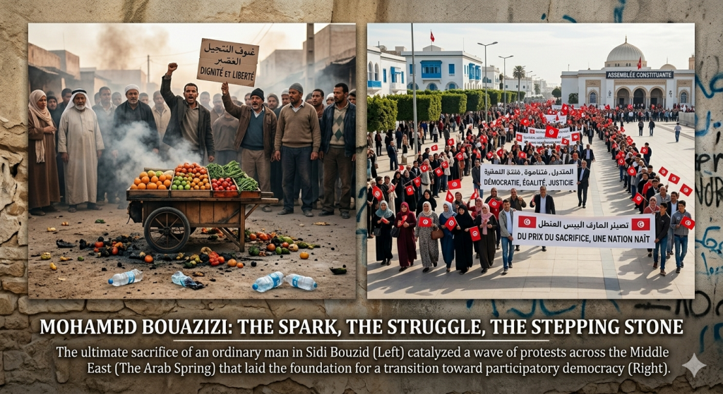 - Britannica Editors (2026, January 1). [Mohamed Bouazizi. Encyclopedia Britannica. https://www.britannica.com/biography/Mohamed-Bouazizi ↵