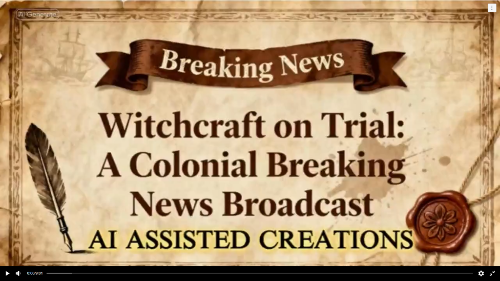 For visuals, I used Gemini Nano, ChatGPT’s image tools, and Cap Cut AI to generate colonial-inspired scenes, such as the interviews with Nurse and parchment-style name titles. These visuals helped me recreate the tone of a 17th-century news report while also keeping historical authenticity.